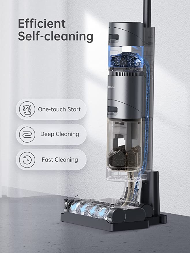 - Autolimpieza con Un Paso, Sensor Inteligente : Dreame H11Max aspiradora en seco y húmedo puede limpiar automáticamente el cepillo giratorio con solo presionar un botón. El sensor de suciedad inteligente que le permite ajustar automáticamente la potencia de succión y el flujo de agua para una limpieza óptima. Los rodillos y tubos se limpian con agua y detergente, lo que le permite mantener todo ensamblado, limpio y sin olores sin esfuerzo.