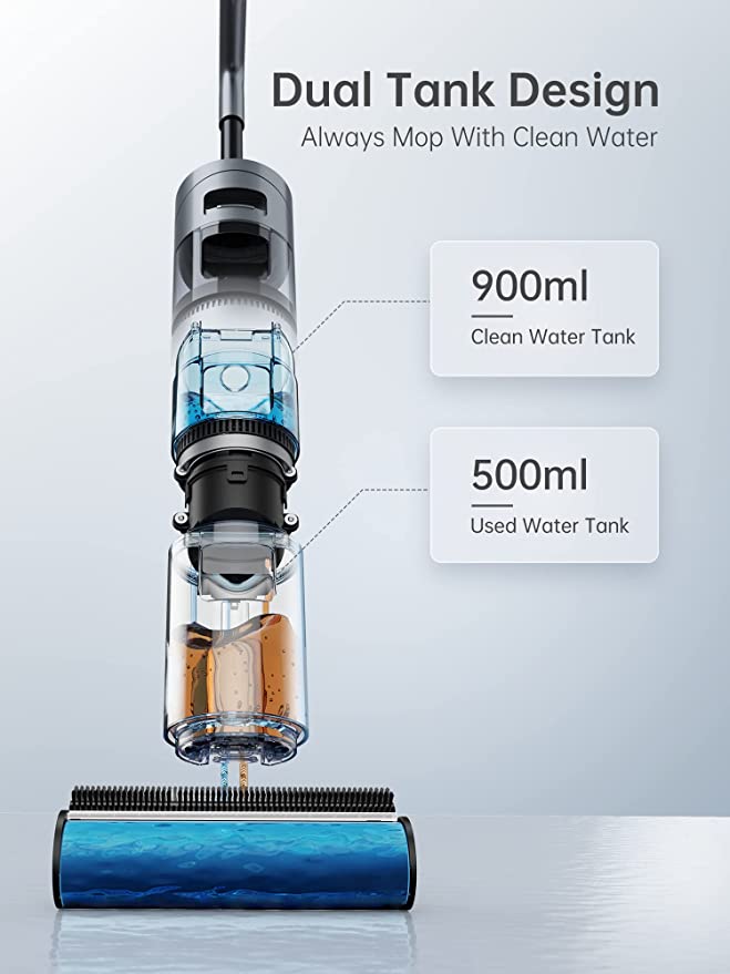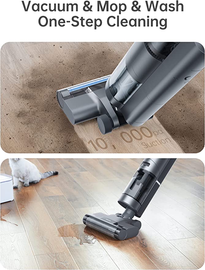 - Limpie Todo, Rápida y Silenciosamente : Un diseño notablemente liviano hace que el aspirador y fregasuelos sea fácil de transportar, incluso al subir y bajar escaleras. La potencia de succión optimizada de forma inteligente, los ajustes automáticos de potencia, la canalización de aire precisa y la reducción de ruido brindan un rendimiento potente y un funcionamiento silencioso para limpiar toda la casa sin molestar a los niños ni a las mascotas.