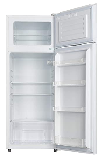 - Frigorífico de dos puertas RFD-213W te proporcionará una gran capacidad con un pequeño tamaño. El refrigerador almacena hasta 168L y el congelador 37L; en total el frigorífico tiene una capacidad de 205L