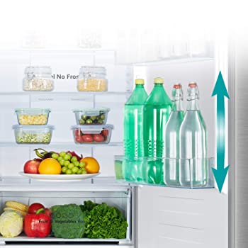 - Los estantes laterales proporcionan más espacio para almacenar bebidas embotelladas y otros artículos en la puerta del frigorífico